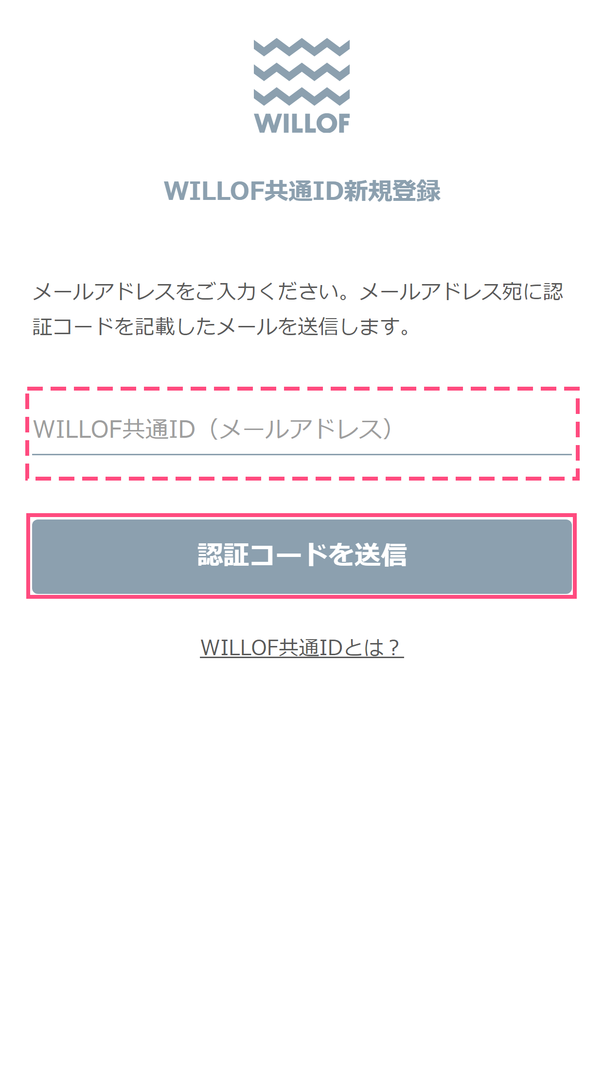 5. WILLOF共通ID情報を入力し「登録」を選択